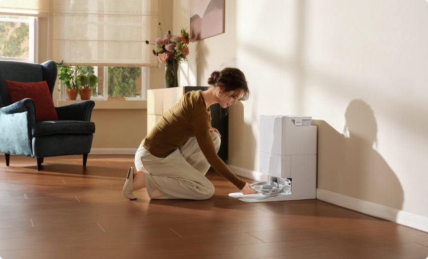Auto-spălarea mopurilor la temperatură înaltă²Uscarea cu aer cald menține atât mopurile, cât și stația de andocare curate, prevenind apariția mirosurilor și menținând un mediu igienic, astfel încât casa să rămână la fel de curată precum arată.
