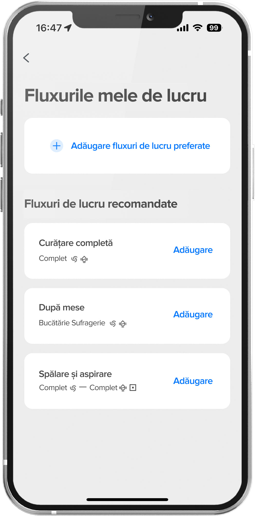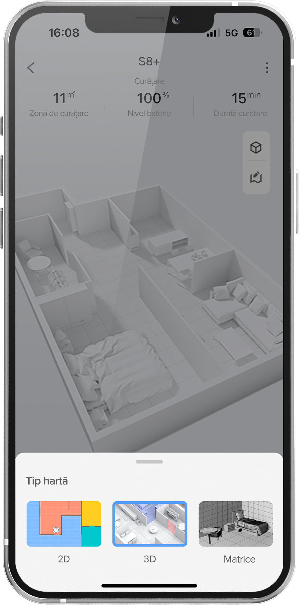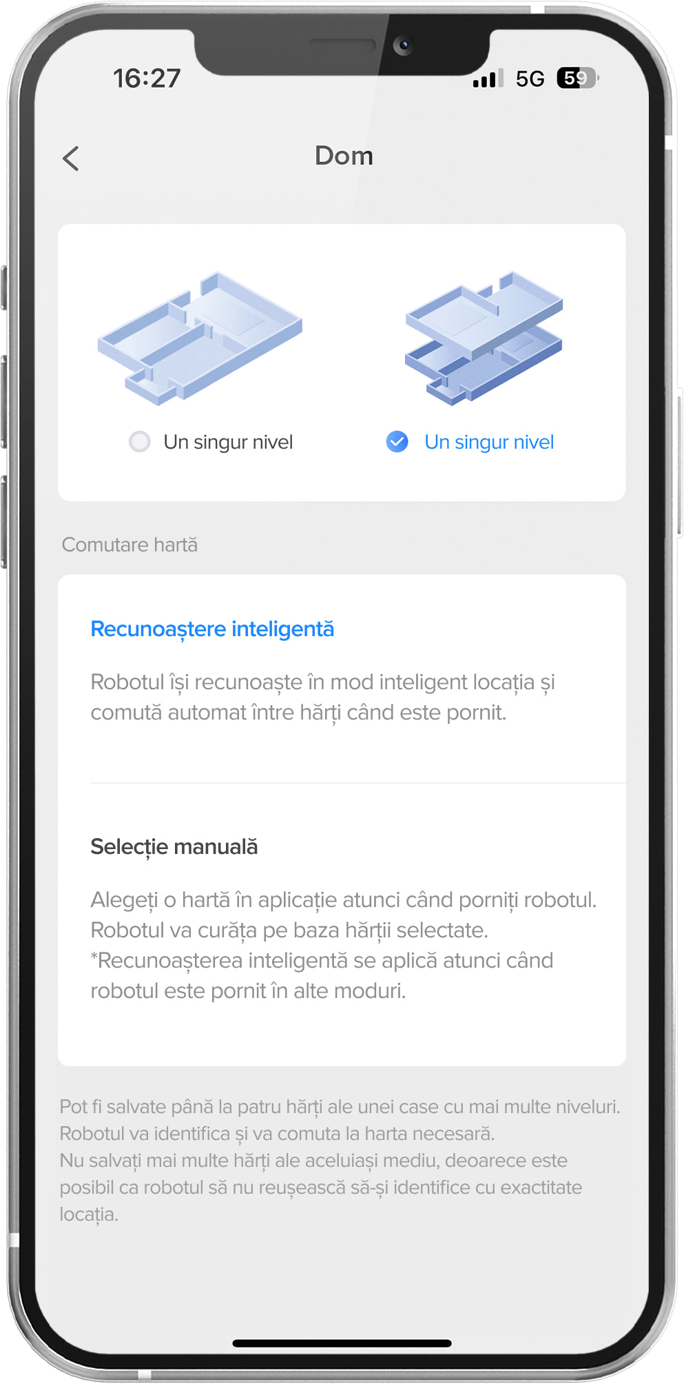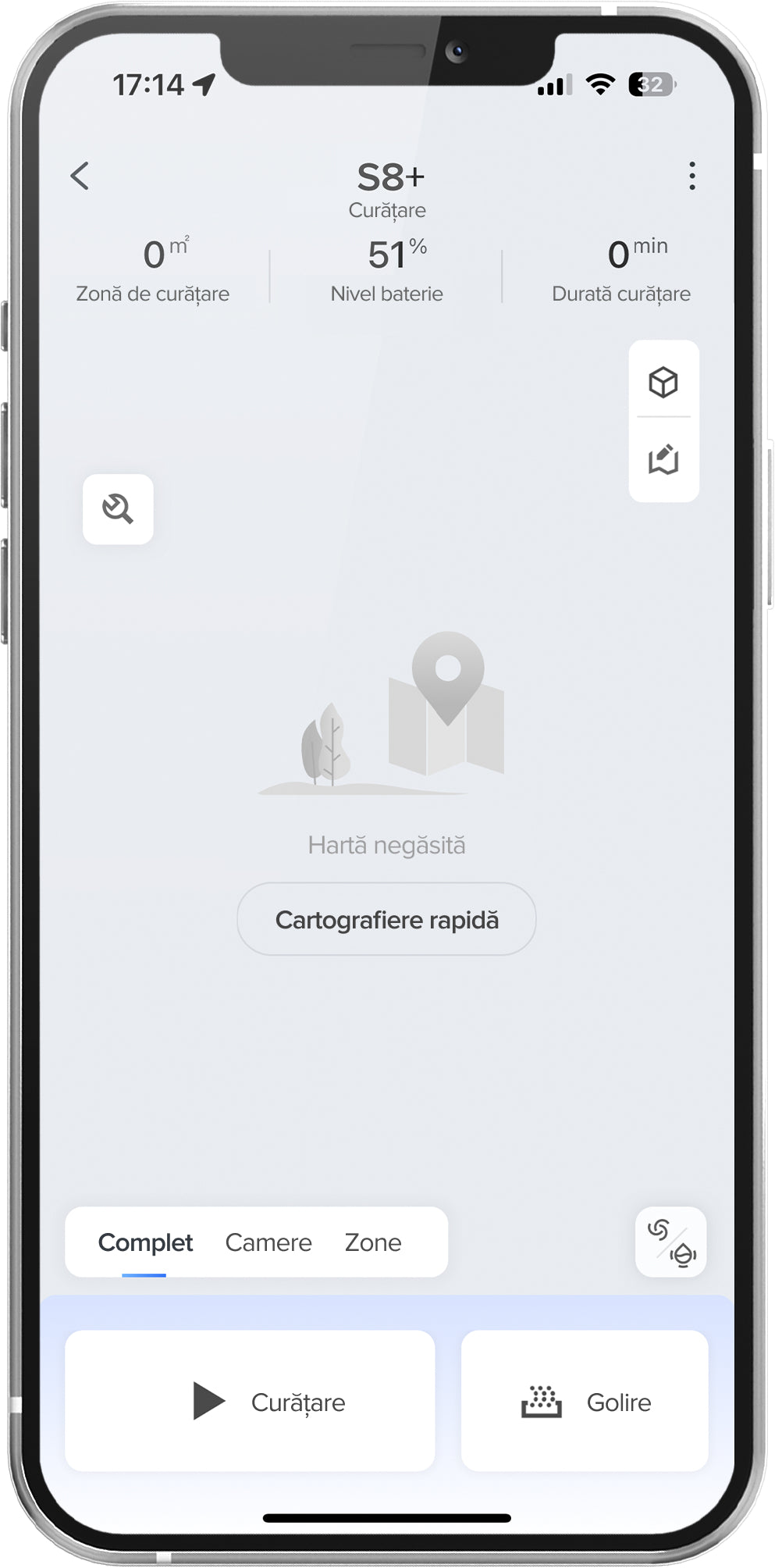 9. Comparativ cu modul Curățare și cartografiere. Rezultatele reale pot varia în funcție de mediul de acasă.