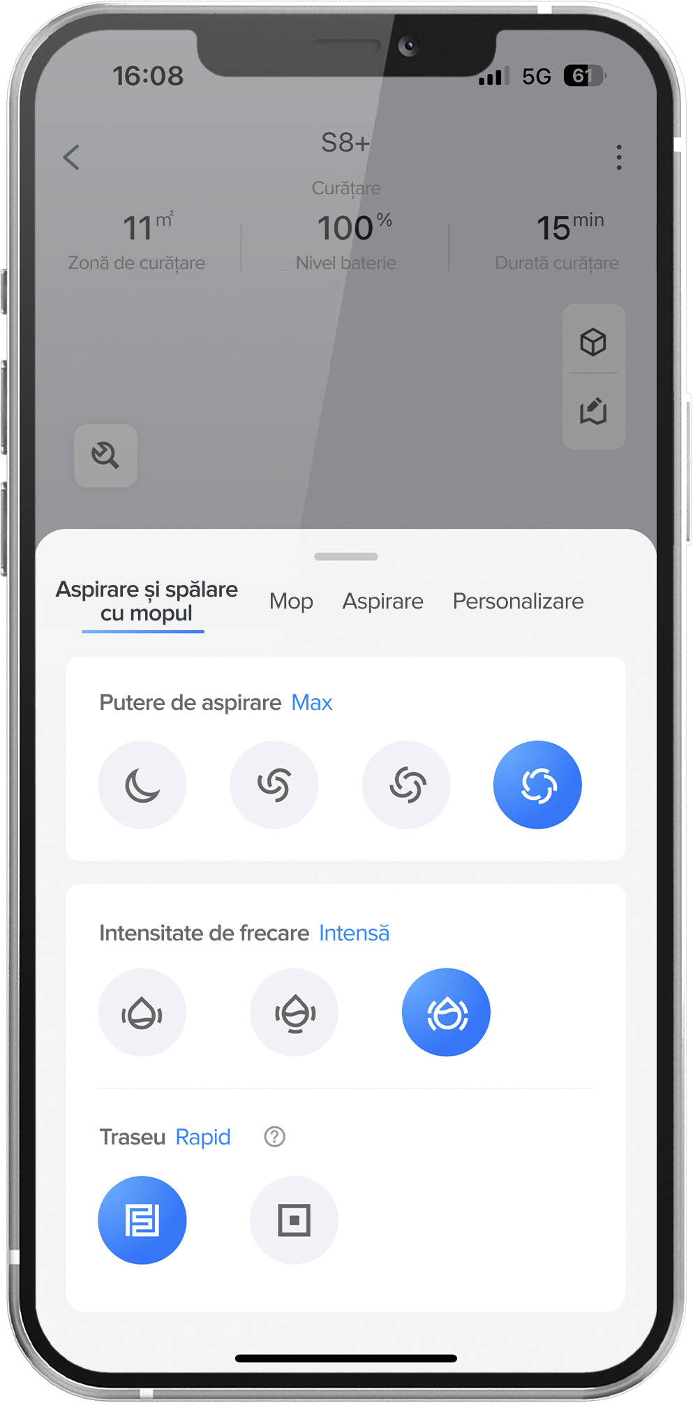 5. Pentru a curăța covorul de două ori, selectați modul profund în setările covorului din Roborock și Mi Home App.