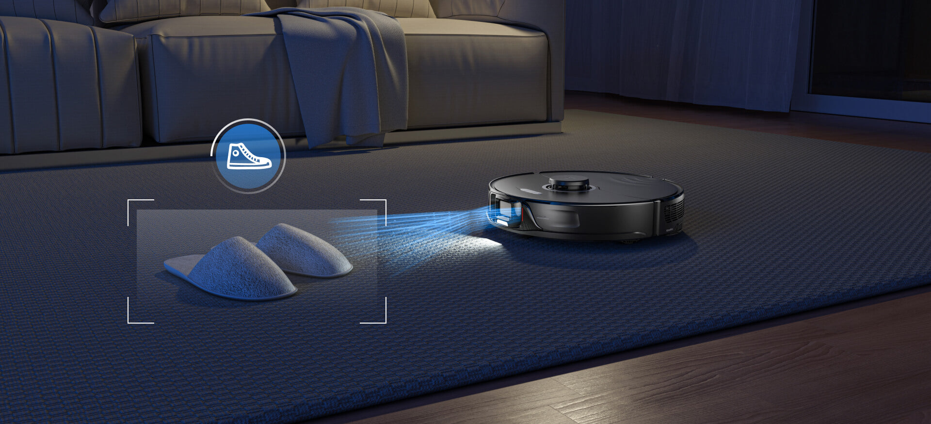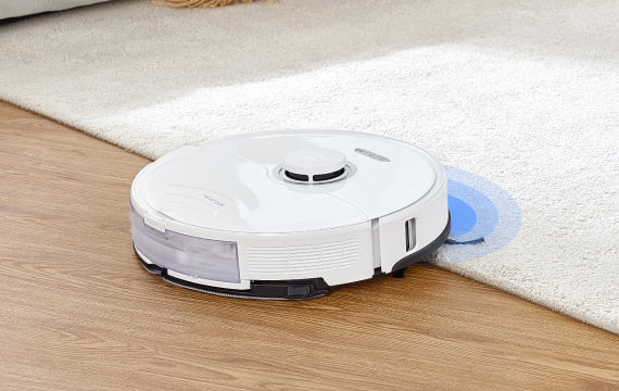 Cu ajutorul ultrasunetelor, robotul identifică extrem de precis covorul.
