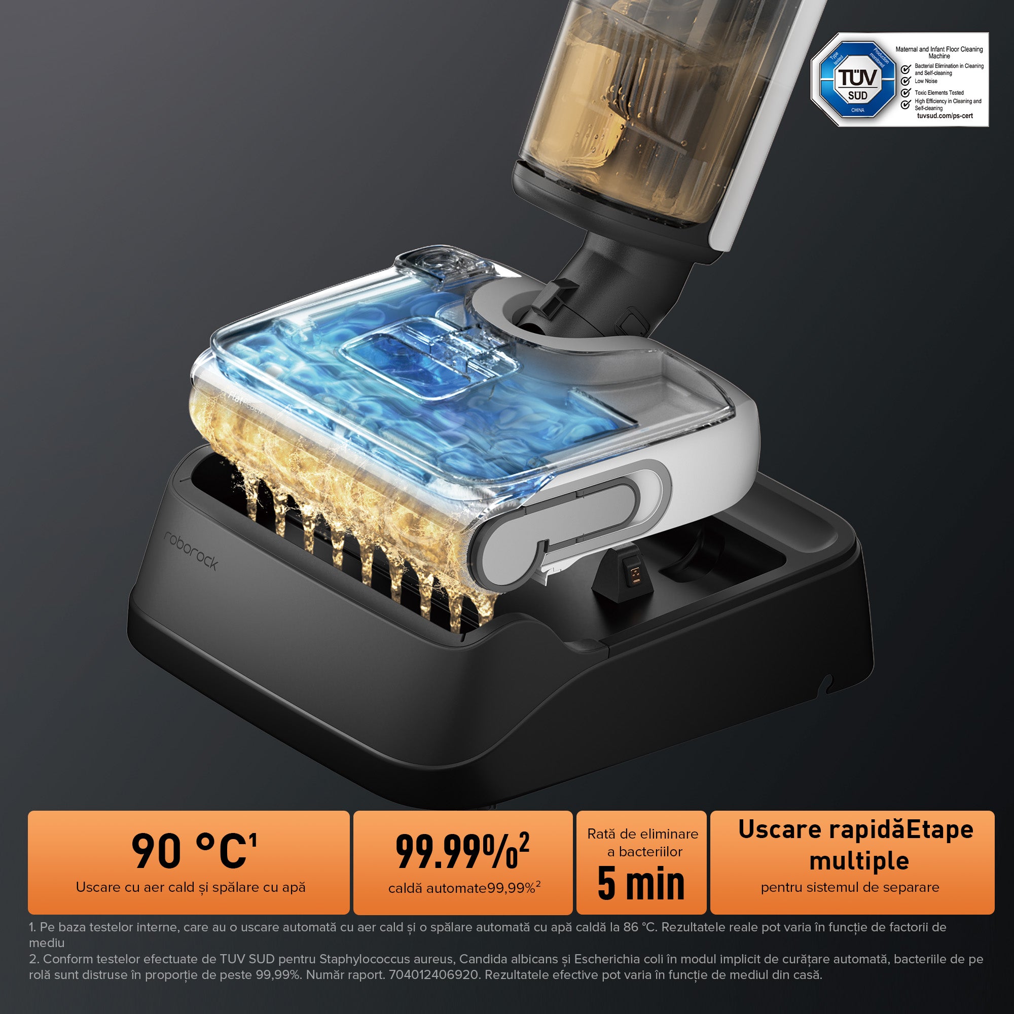 2.Comparativ cu alte produse Roborock de aspirare umedă-uscată lansate înainte deianuarie 2025. Rezultatele efective pot fi diferite, în funcție de factorii de mediu