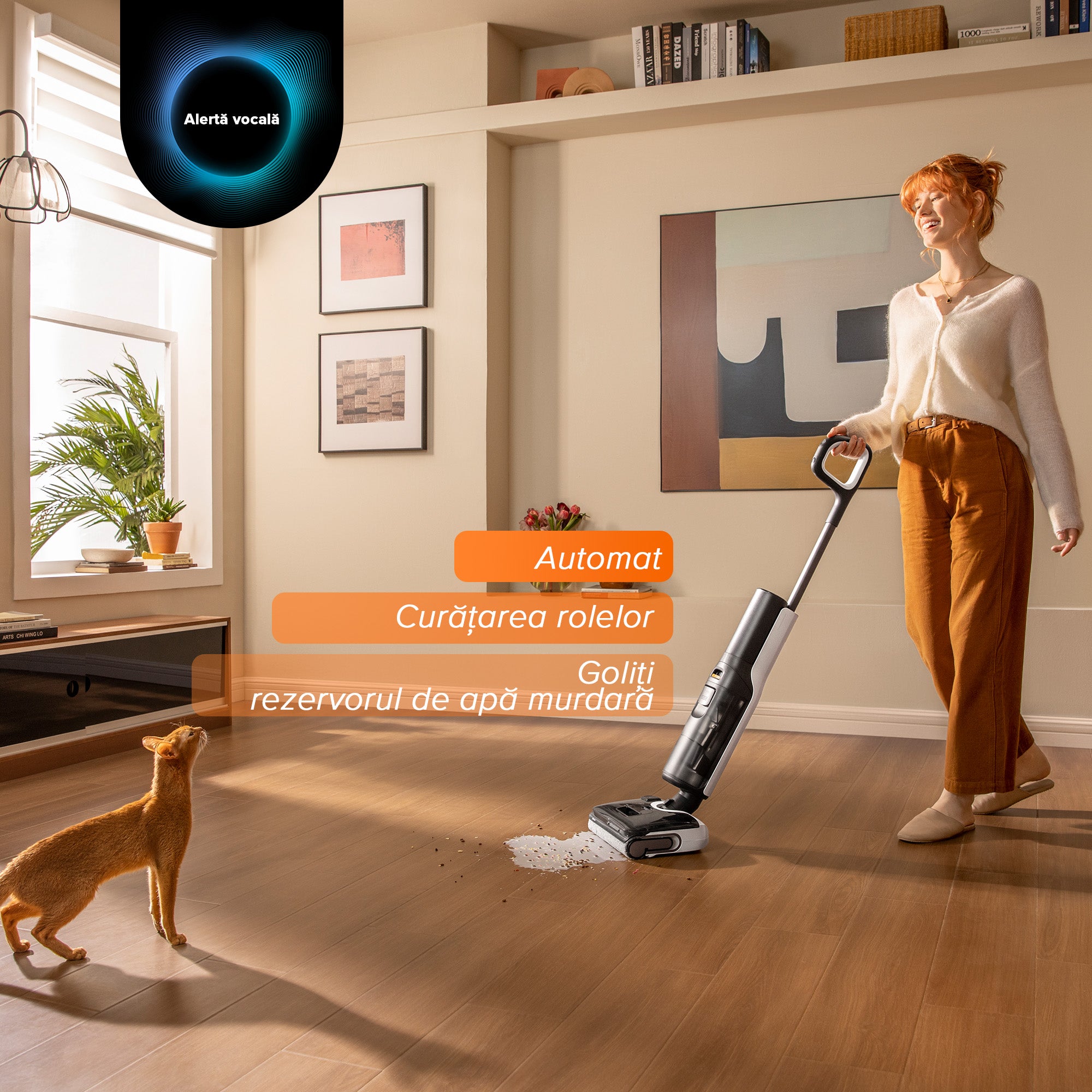 Senzorul inteligent detectează nivelurile de murdărie în timp real, ajustând automat intensitatea optimă de curățare a suprafețelor pe măsură ce curăță.5