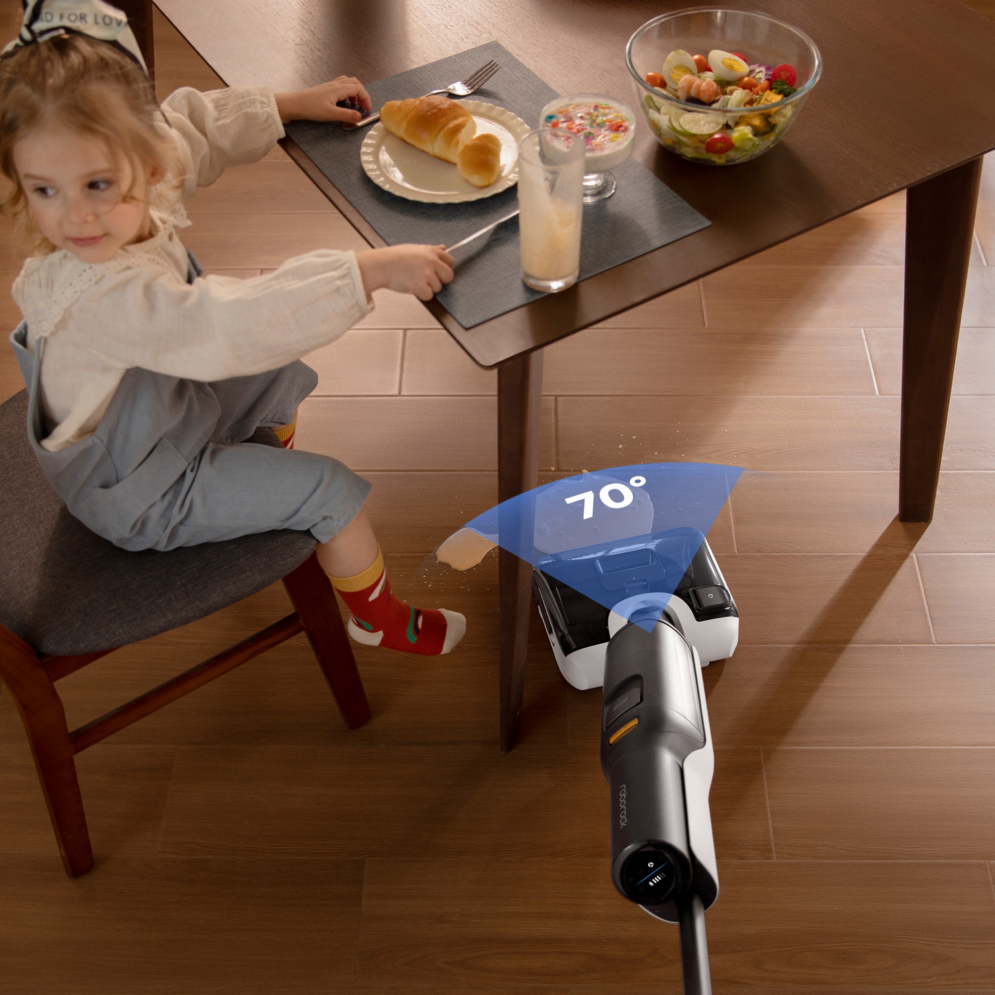 Îmbunătățit cu un rezervor de apă poziționat mai jos și un design pivotant la 70°, vă permite să glisați fără efort pe lângă mobilier și obstacole, oferind o curățare mai lină și mai eficientă.
