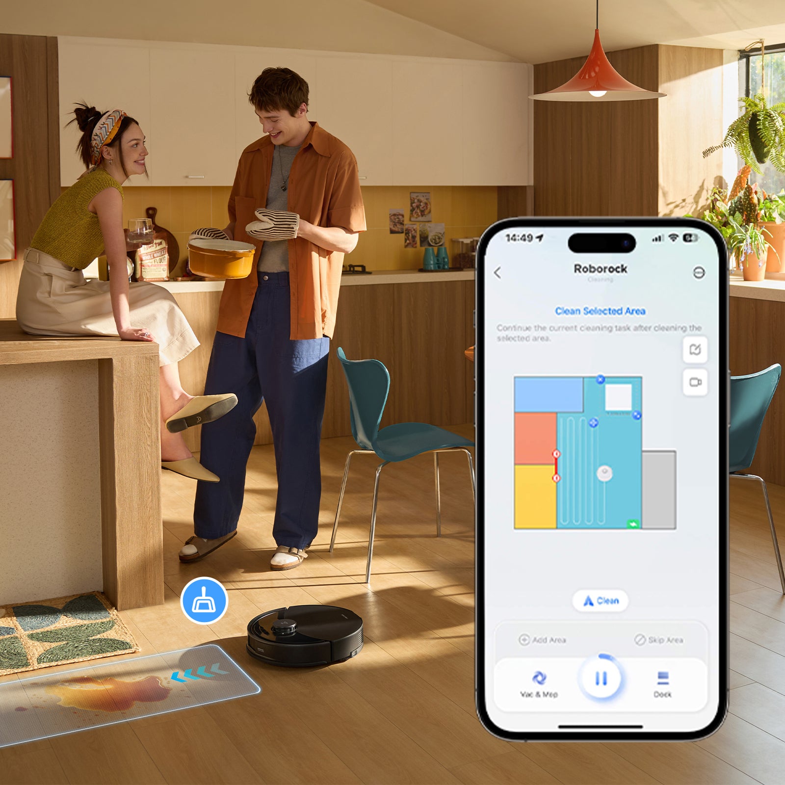 Evită întreruperile cu navigația inteligentă care detectează locuri dificile, cum ar fi sub scaune și mese, și sugerează automat zone interzise pentru a menține curățenia fără întreruperi.