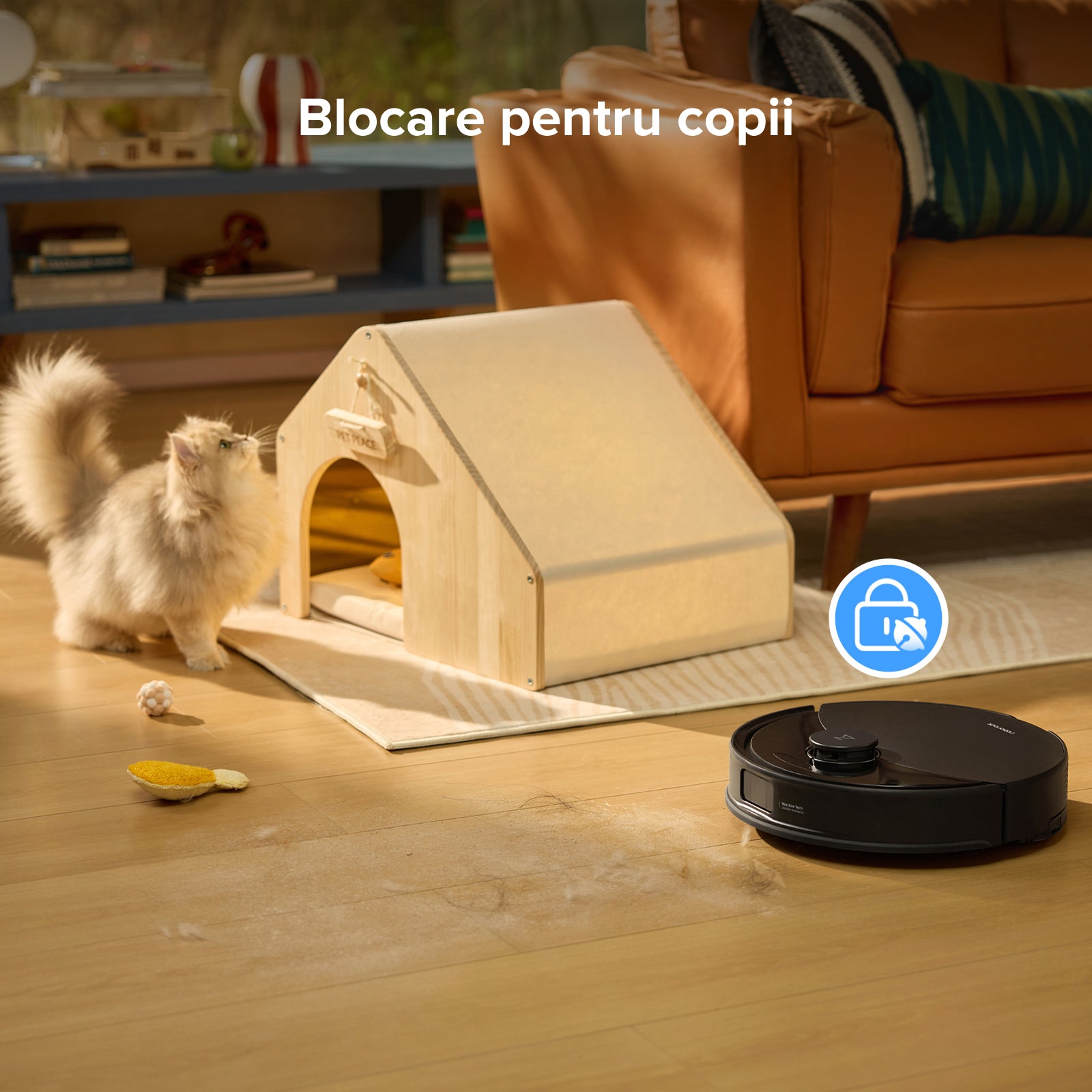 Previne acționarea greșită de către copii și asigură utilizarea în siguranță. Puteți accesa această funcție în aplicația Roborock.
