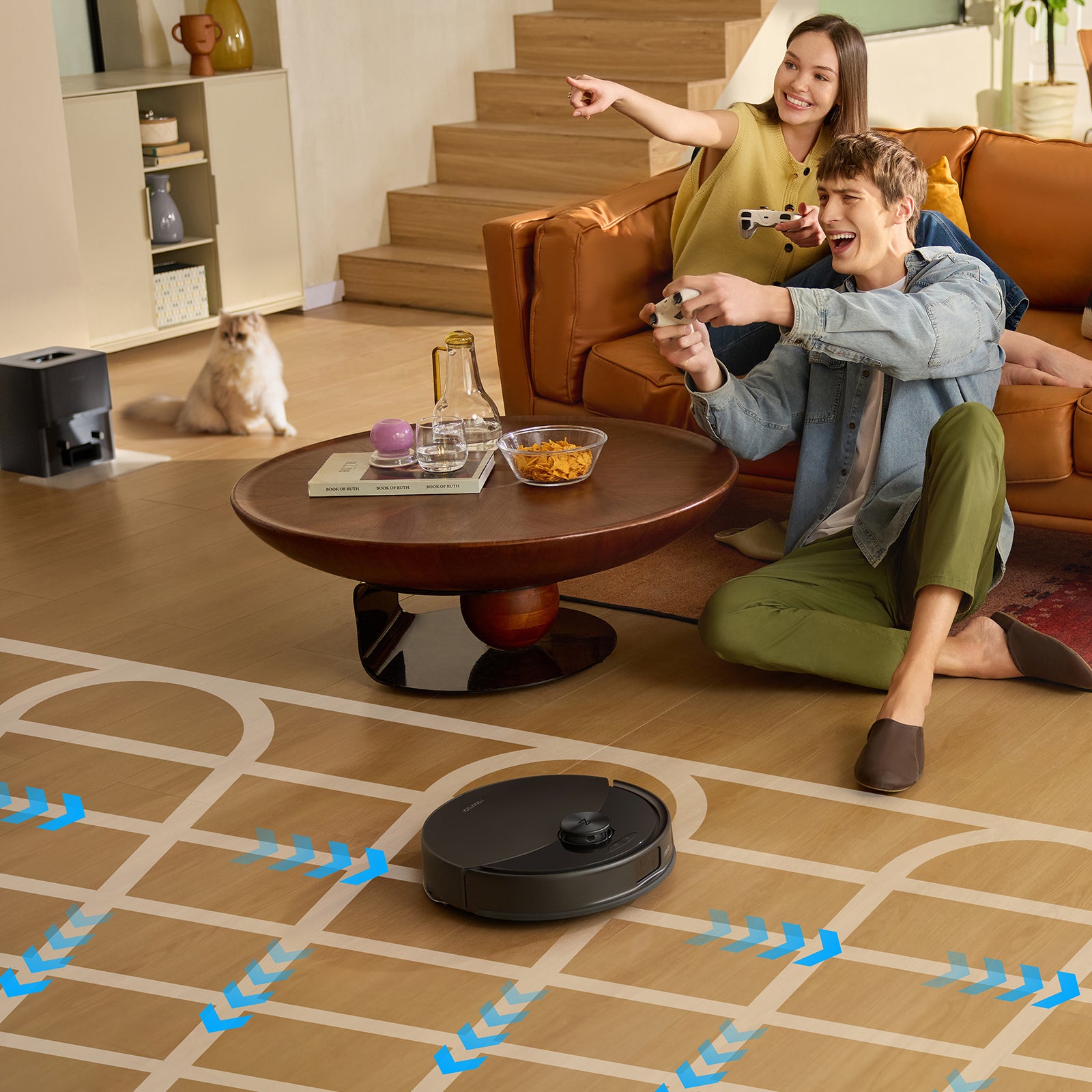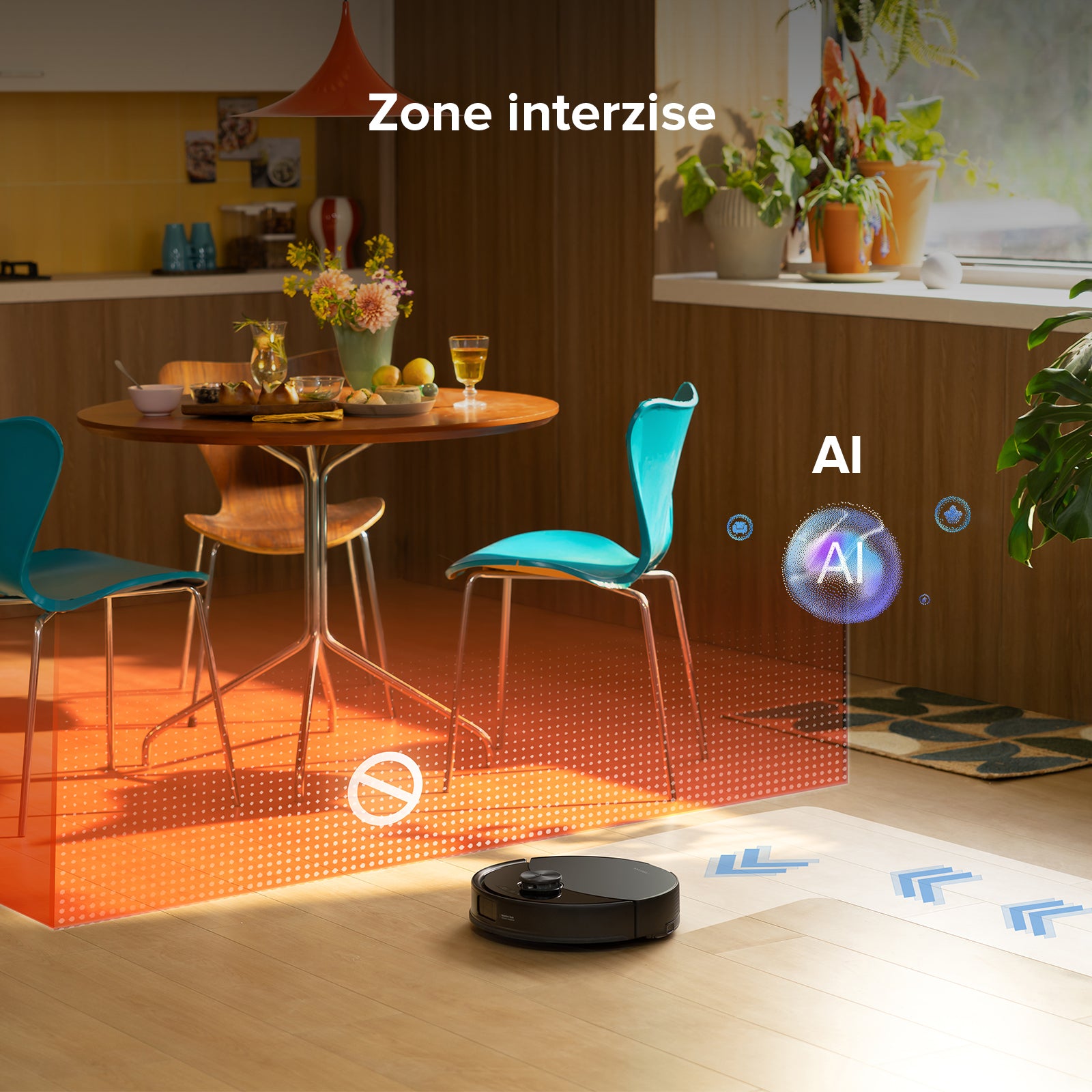 Evită întreruperile cu navigația inteligentă care detectează locuri dificile, cum ar fi sub scaune și mese, și sugerează automat zone interzise pentru a menține curățenia fără întreruperi.
