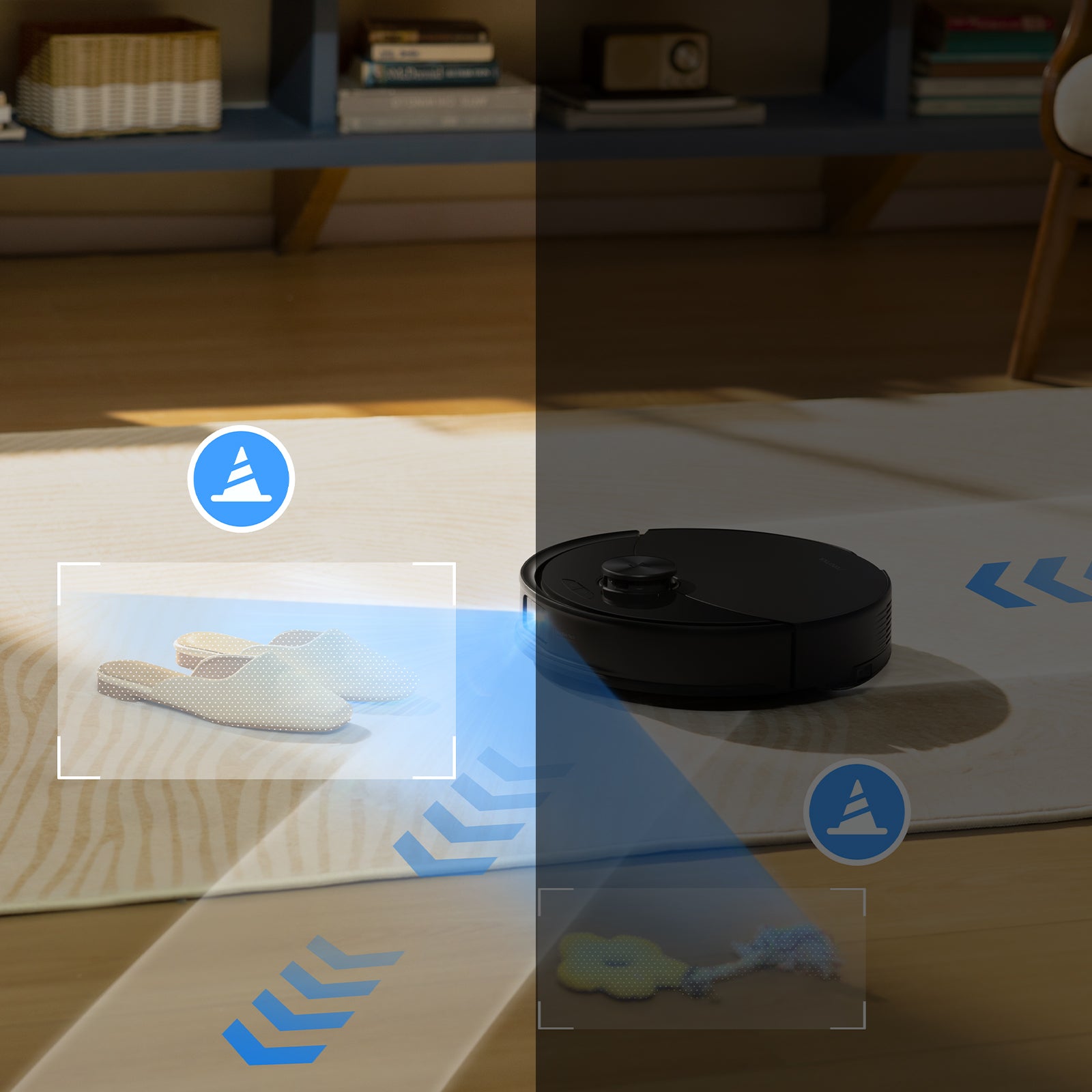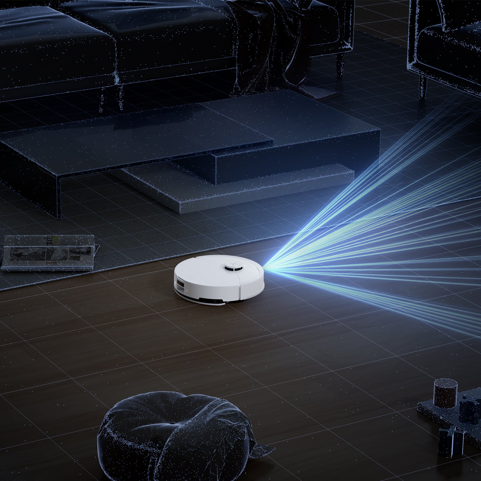 Alimentat de lumină structurată, produsul este pregătit să detecteze și să navigheze cu ușurință în jurul obstacolelor, chiar și în camere aglomerate cu obiecte împrăștiate pe podea.