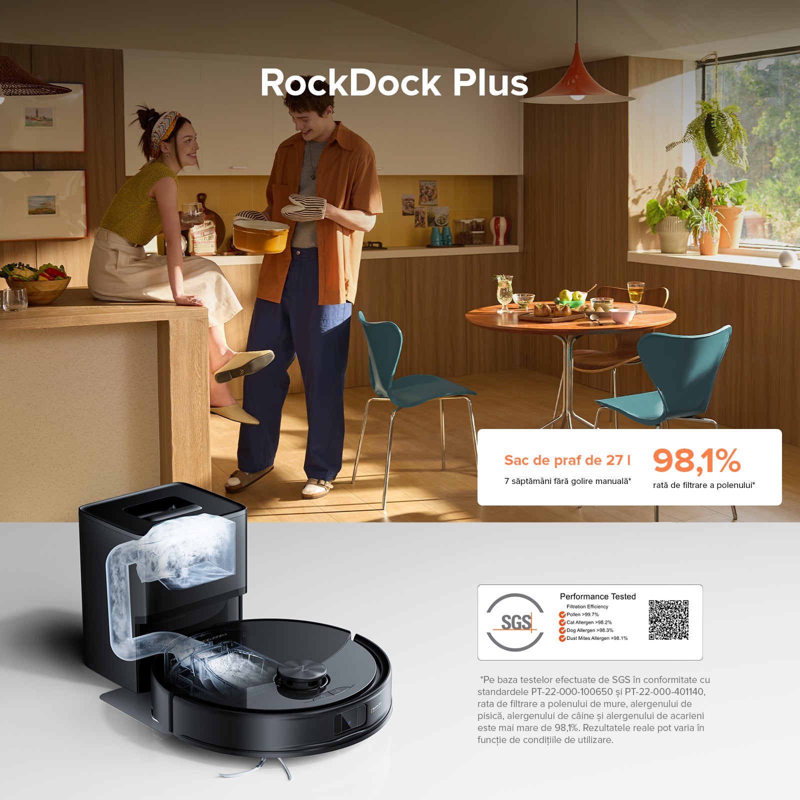 Stația de andocare cu auto-golire extrage automat praful din rezervorul de praf al aspiratorului robot, reducând frecvența golirii manuale a coșului de gunoi. Prin aspirarea automată a murdăriei înapoi în stația de andocare, vă puteți bucura de peste 7 săptămâni de curățenie hands-free.