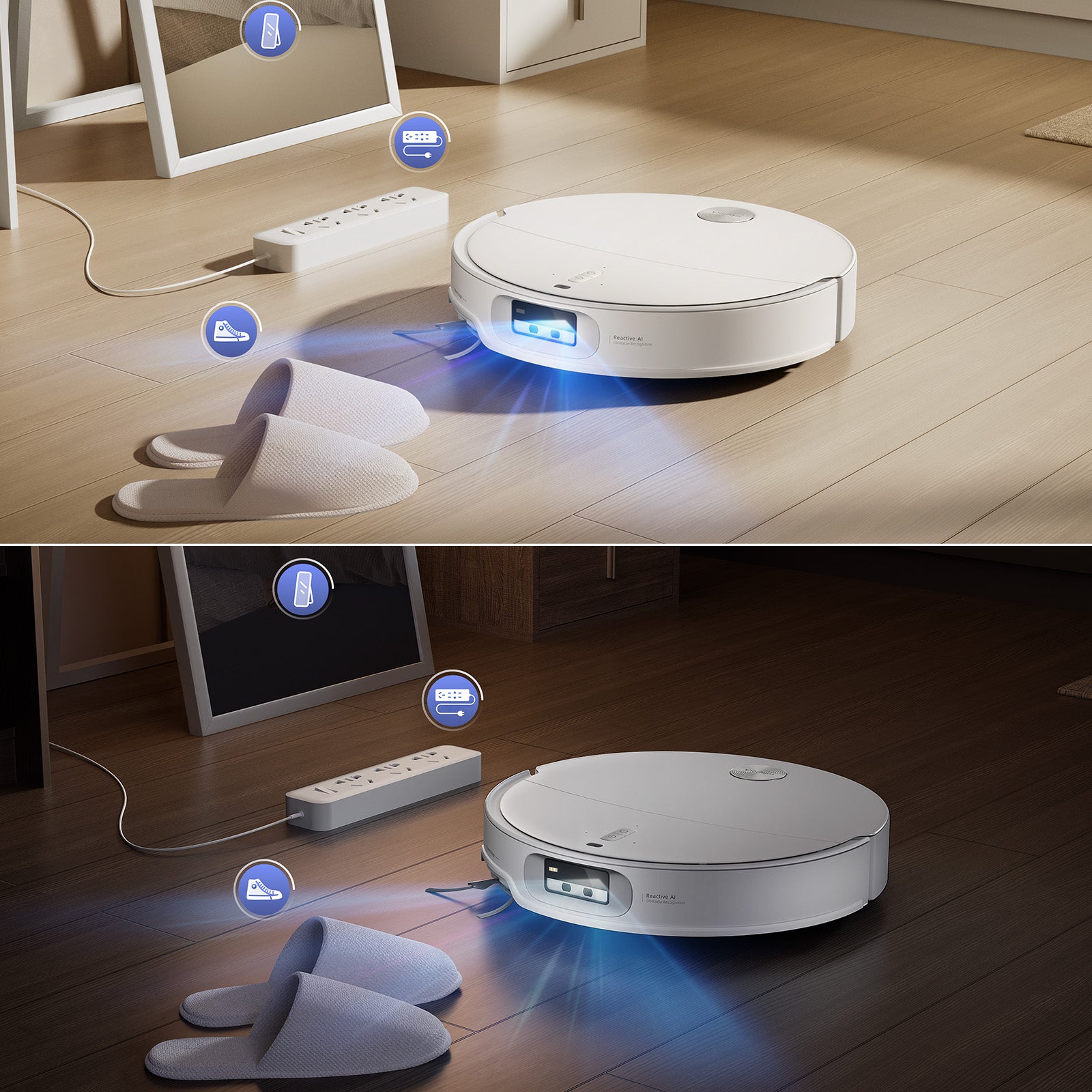 Dotat cu lumină structurată și o cameră RGB, robotul detectează inteligent și ocolește 108 tipuri de obiecte12, deplasându-se continuu în jurul obstacolelor atât în spații bine luminate, cât și întunecate—nu este necesar să eliberați pardoseala în prealabil.