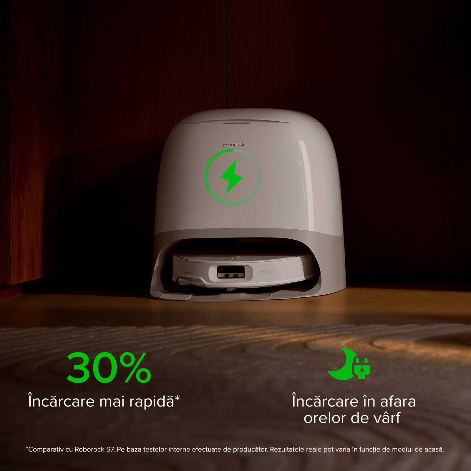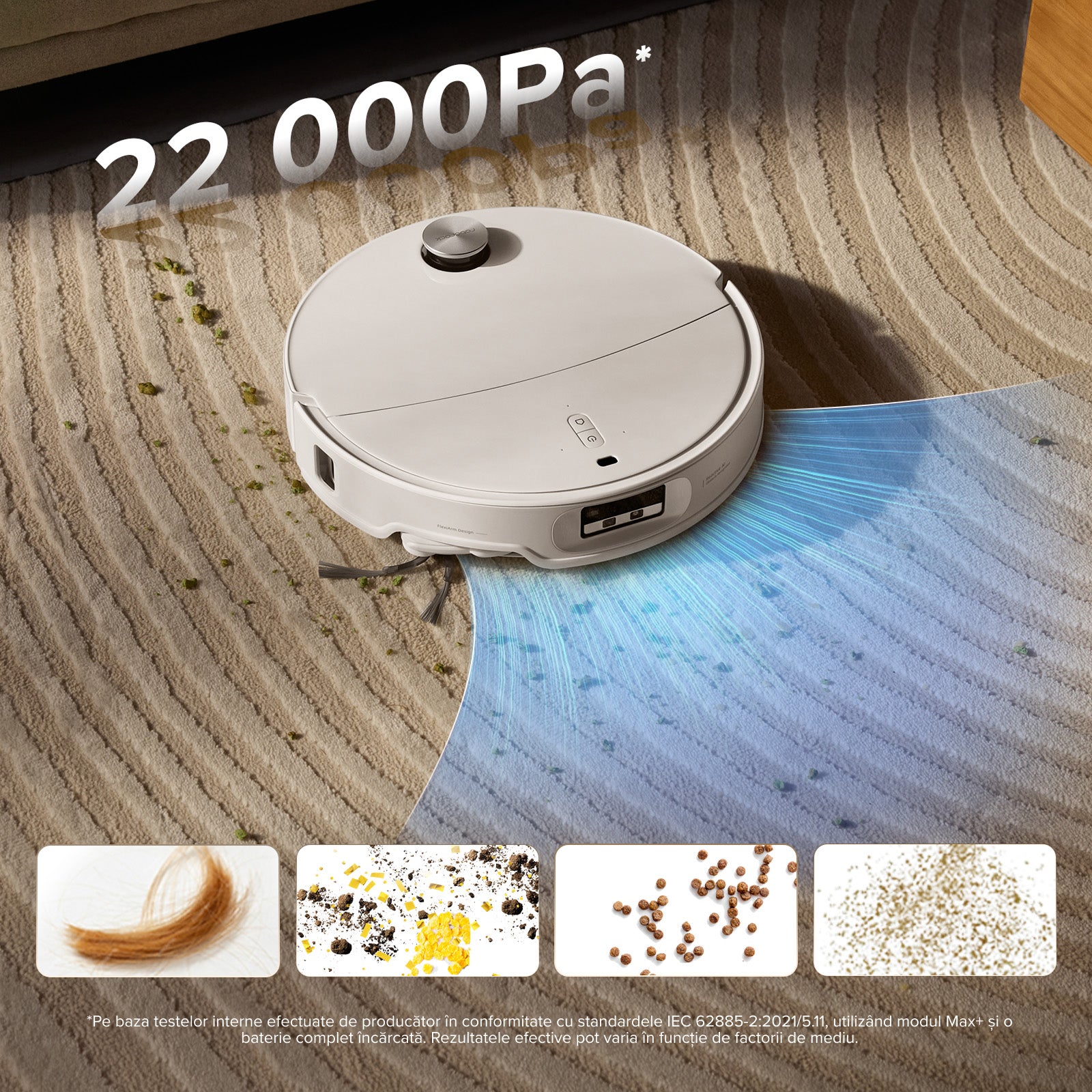 17. Comparativ cu Roborock S7. Pe baza testelor interne efectuate de producător. Rezultatele reale pot varia în funcție de mediul de acasă.