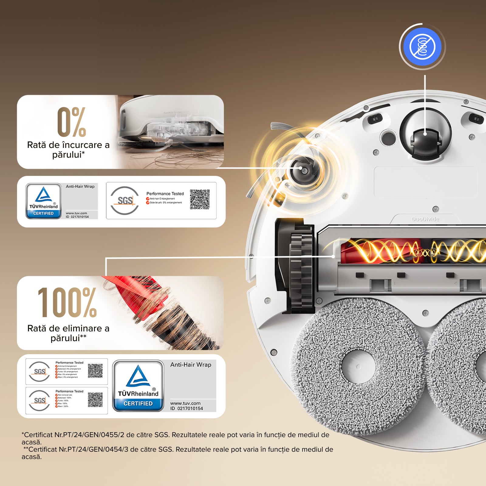 3. Pe baza testelor interne efectuate de producător. Rezultatele efective pot varia în funcție de factorii de mediu. intre aspiratoarele robot Roborock.