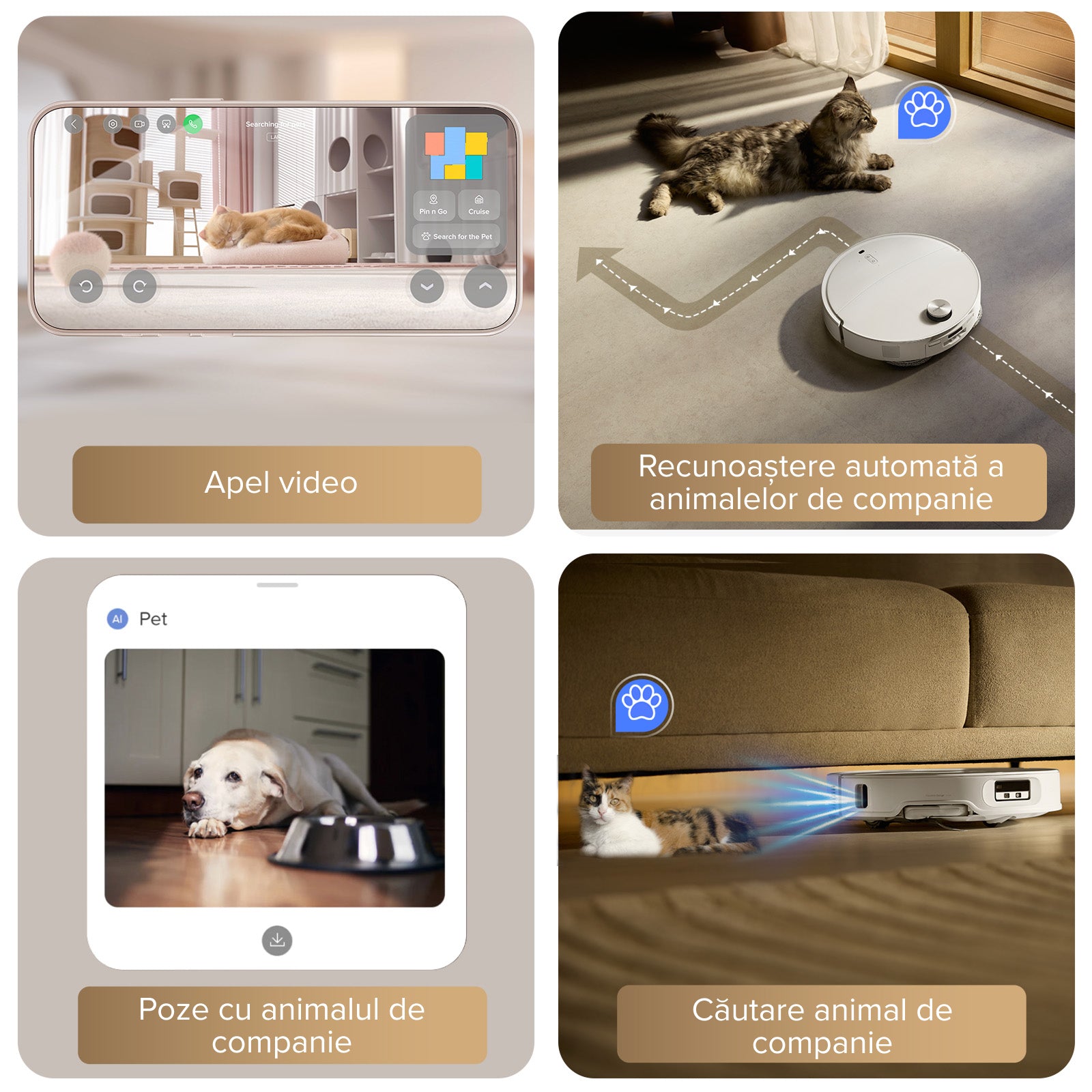 Robotul poate căuta automat animalele de companie, descoperind unde sunt ascunse.