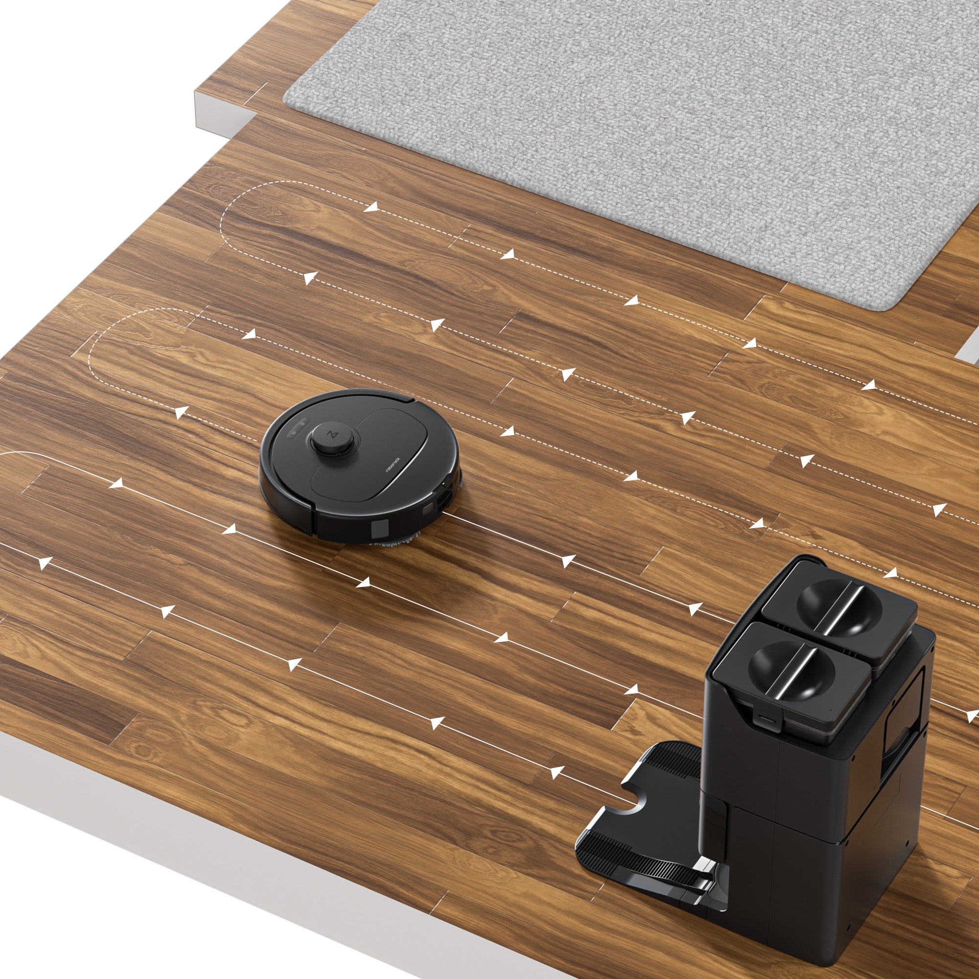 Robotul curăță de-a lungul direcției plăcilor prestabilite pentru a îndepărta mai bine părul și praful din crăpături, reducând în același timp zgomotul produs de peria principală care se freacă de crăpăturile pardoselii.