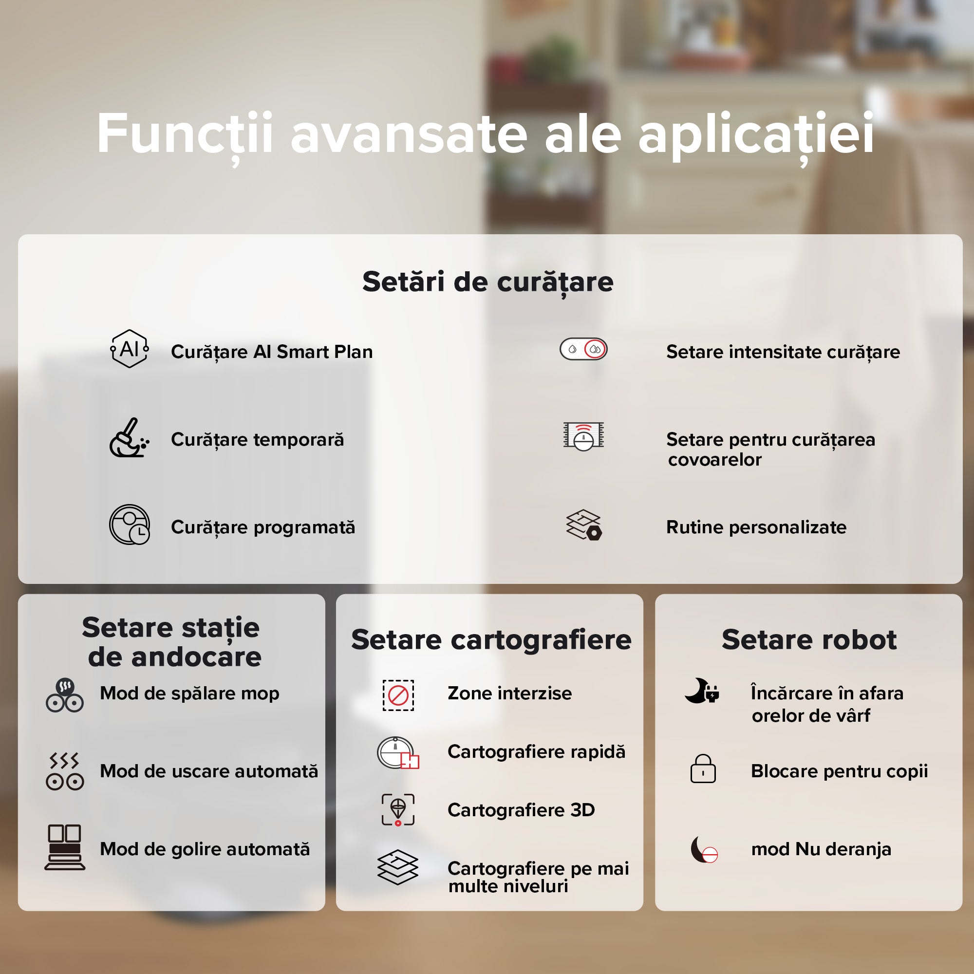 Deblocați întregul potențial al rutinei dvs. de curățare cu aplicația Roborock, care vă oferă control, funcții intuitive și o experiență de curățare fără bătăi de cap, concepută să se adapteze la propriul stil de viață.