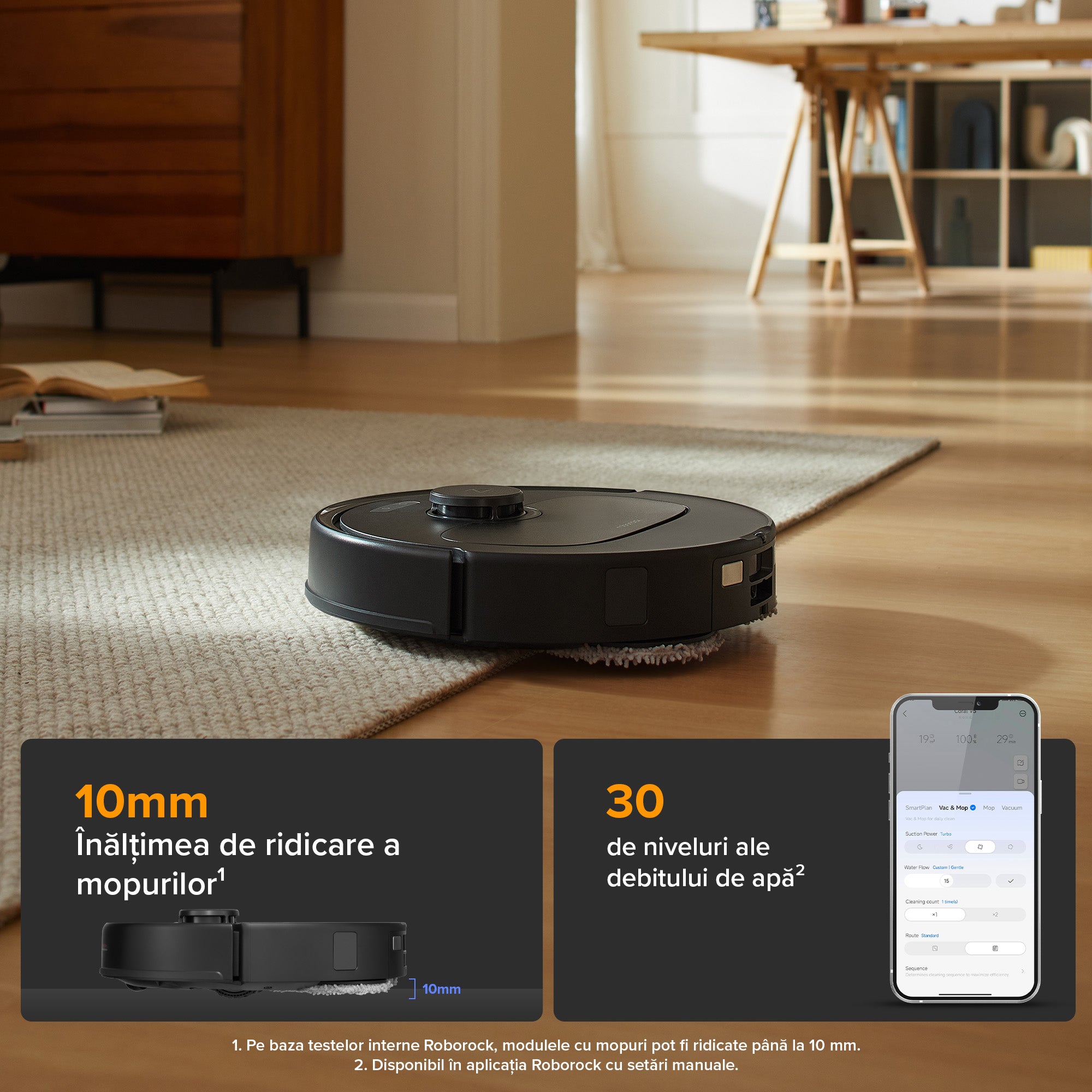 Prin setarea tipului de cameră și de pardoseală în aplicația Roborock, aspiratorul robot va fi personalizat pentru nevoile locuinței dvs. cu diferite debite de apă și niveluri de putere de aspirare pentru o curățare perfectă.