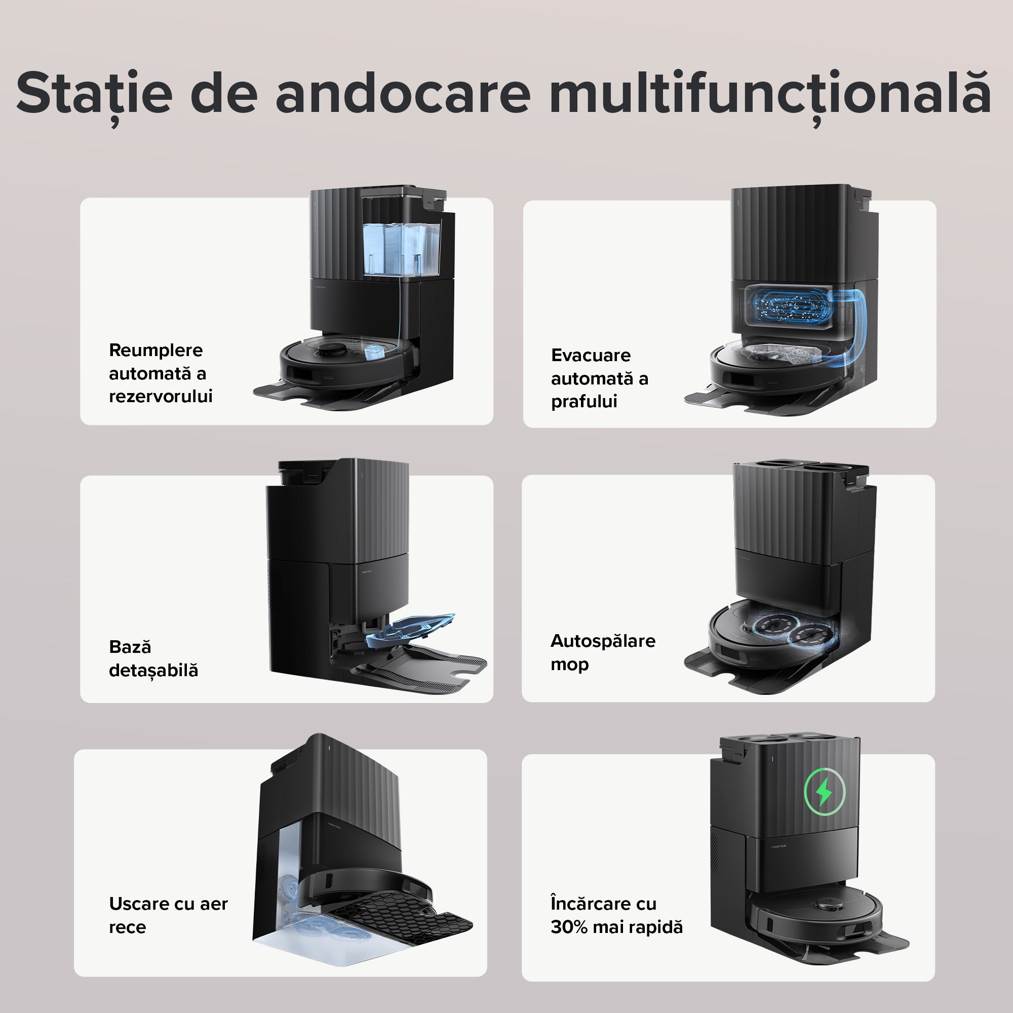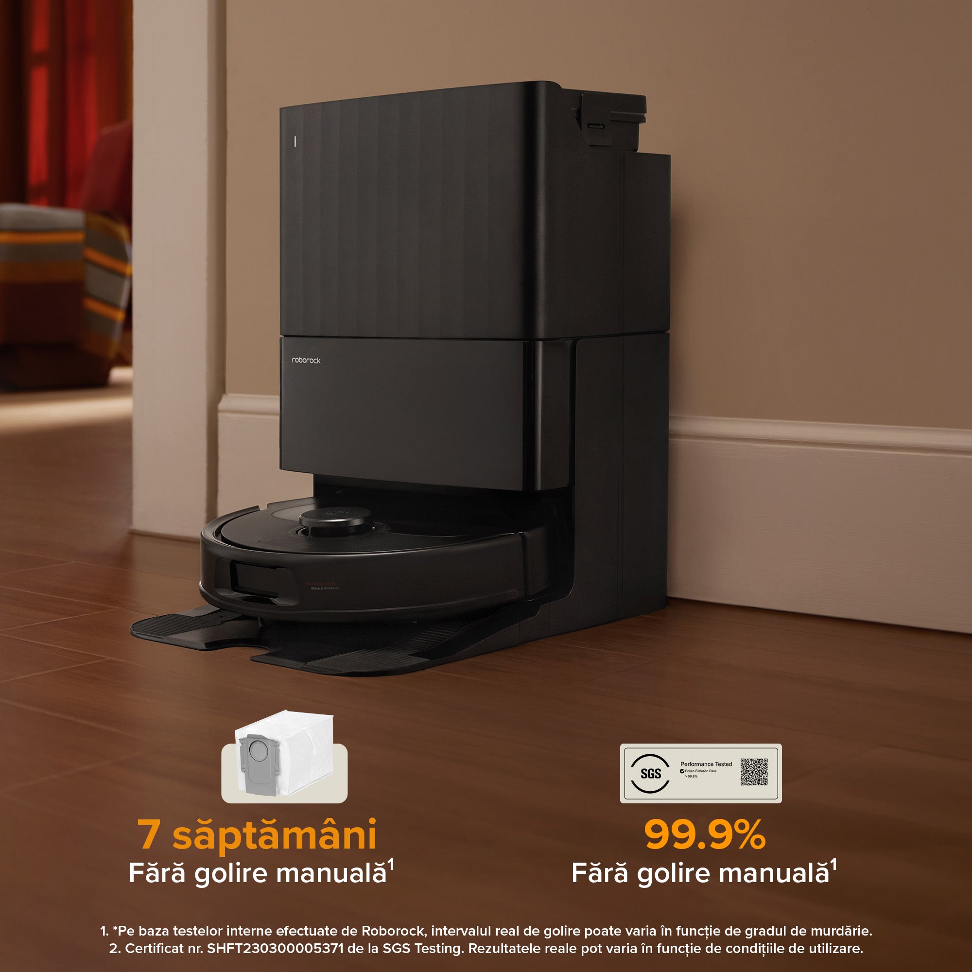 Revoluționați-vă curățarea locuinței cu stația de andocare all-in-one, care se ocupă de întreținerea robotului în locul dvs.