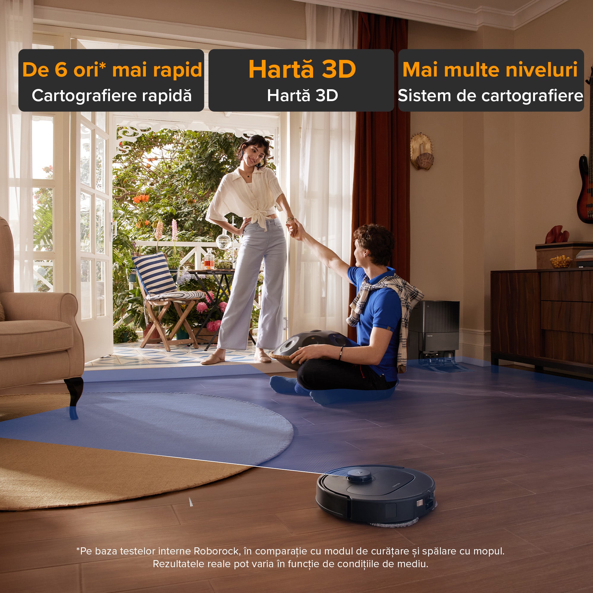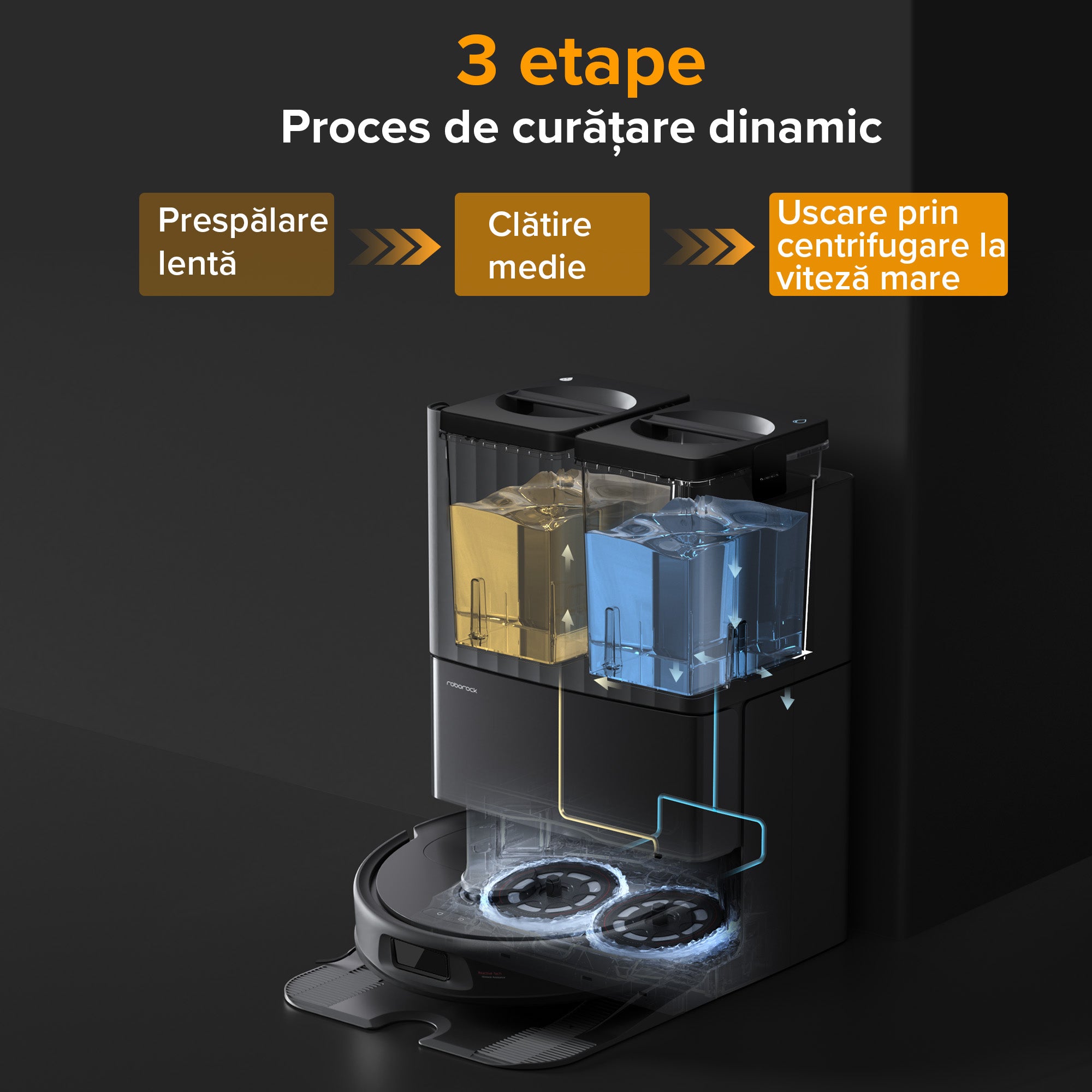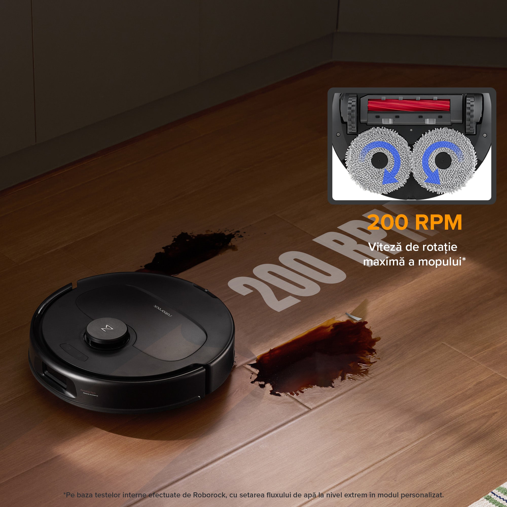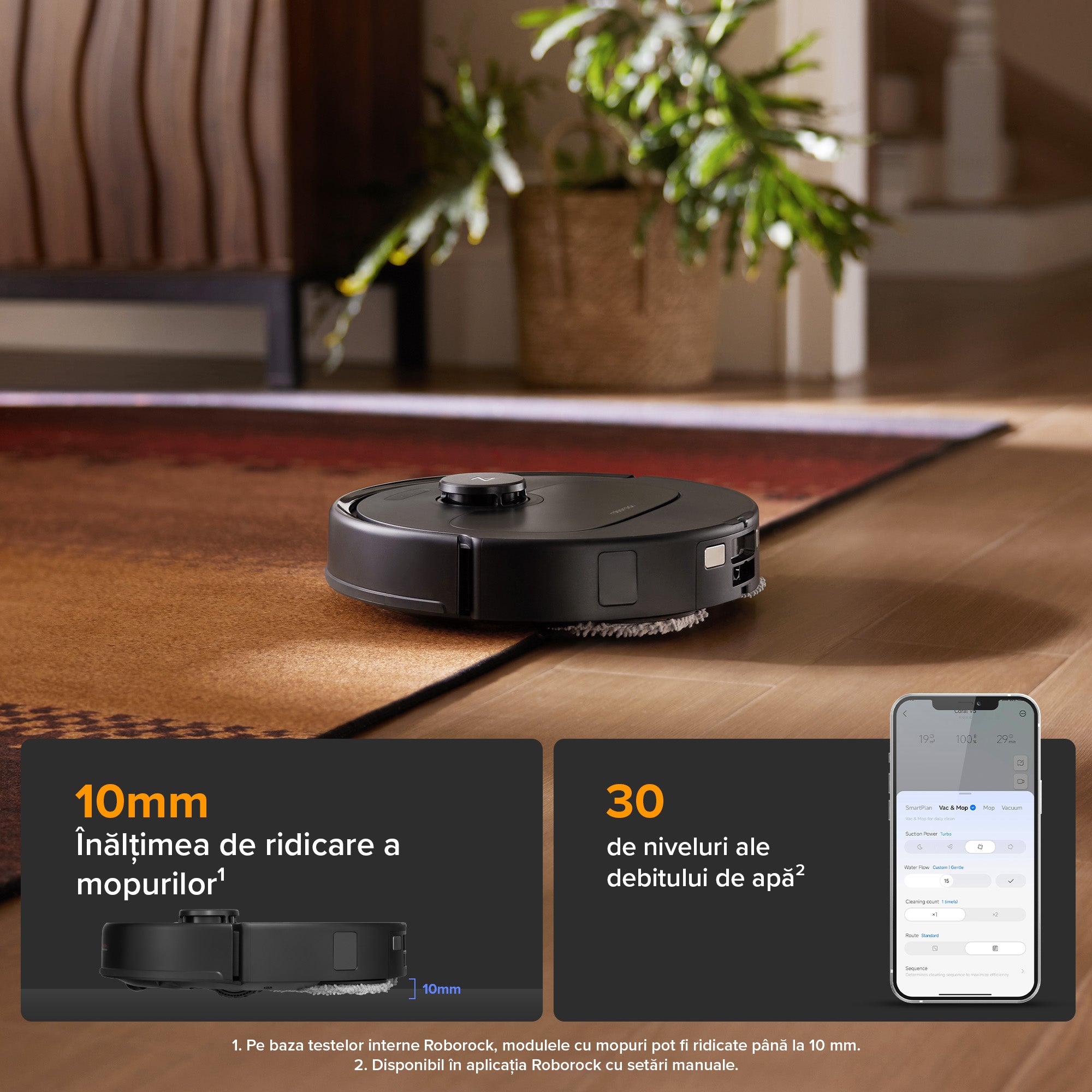 2.Pe baza testelor interne Roborock, selectând un debit de apă extrem în modul personalizat. Rezultatele reale pot varia în funcție de condițiile de utilizare.