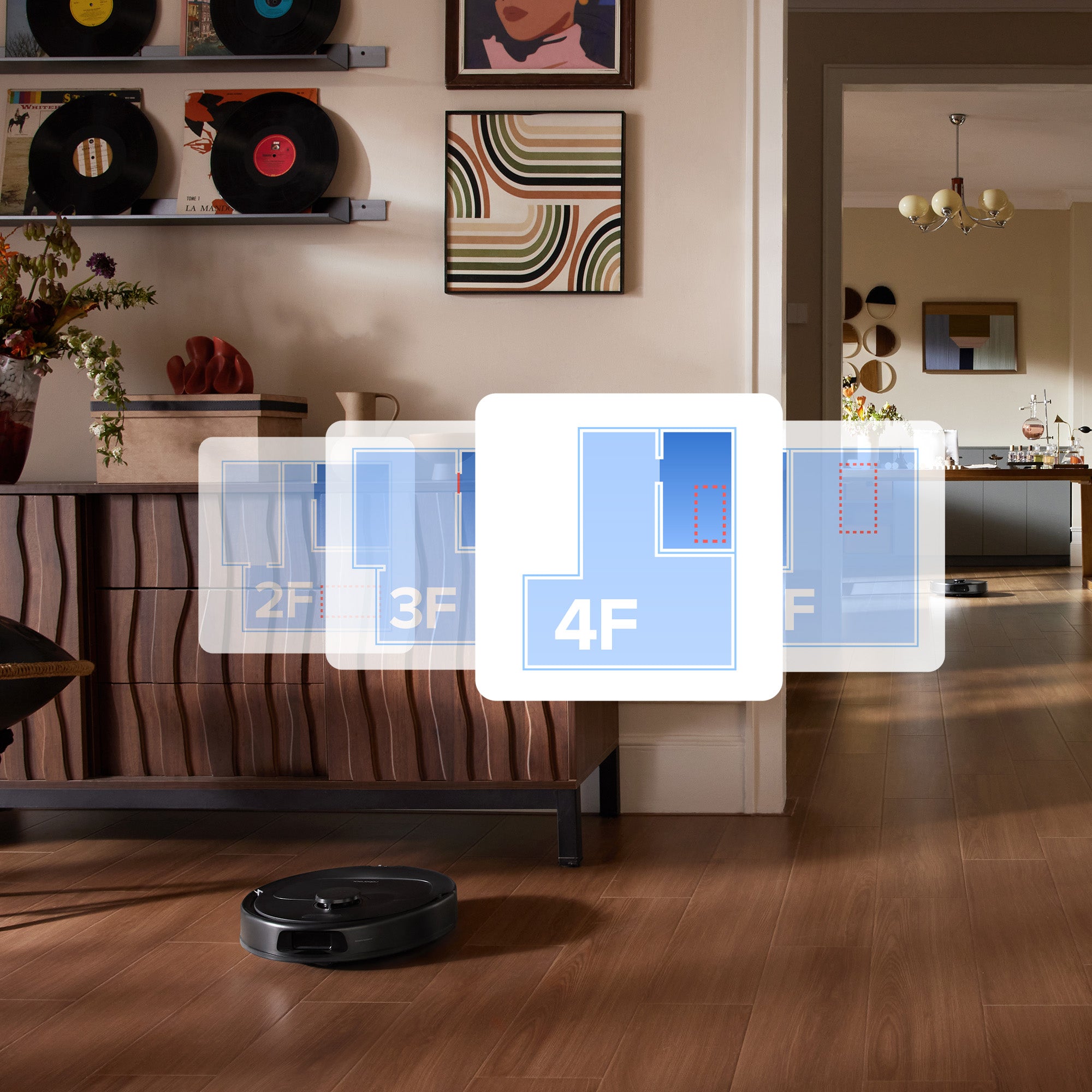 Sistemul de cartografiere pe mai multe niveluri recunoaște și creează automat hărți cu până la 4 niveluri. Tot ce trebuie să faceți este să lăsați robotul jos.
