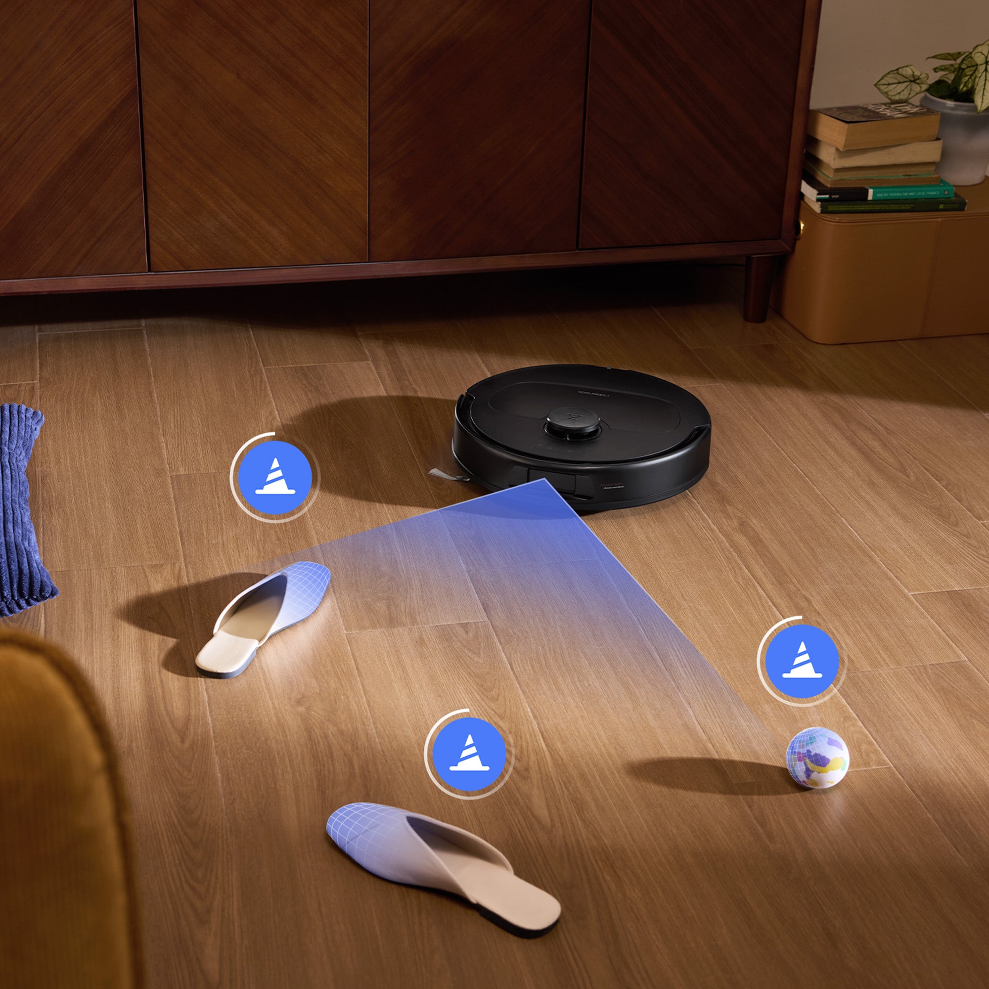 Bazat pe lumină structurată, robotul este pregătit să detecteze și să navigheze cu ușurință în jurul obstacolelor, chiar și în camere aglomerate cu obiecte împrăștiate pe pardoseală.